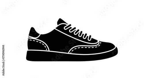 sneaker, shoe, footwear, black, leather, lace, classic, design, illustration, style, fashion, apparel, clothing, athletic, sport, casual attire, comfortable, trendy, modern, simple, elegant, silhouette, outline, vector, graphic, icon, symbol, image, picture, drawing, vignetting, template, element, detail, stitching, sole, upper, heel, toe, textile, fabric, garment, accessory, product, object, item, monochrome, dark