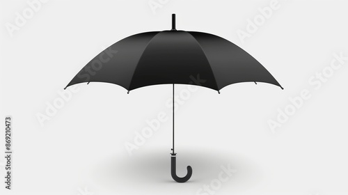 Classic black umbrella on plain background. Simple and elegant design that protects from rain. Essential accessory for rainy days with a traditional style.