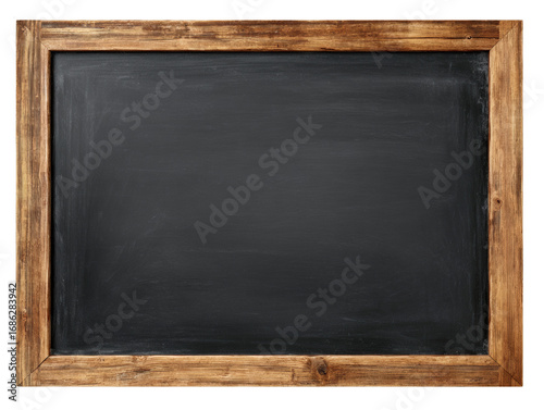 Classic chalkboard with rustic wooden frame creating a vintage school presentation element with a