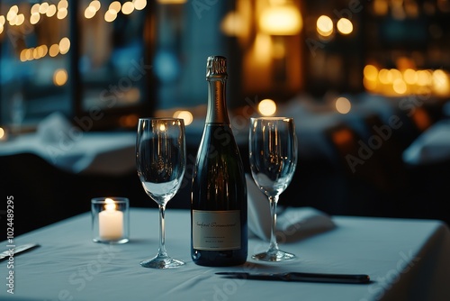 Classic Champagne Bottle Displayed on Table Perfect for Special Events