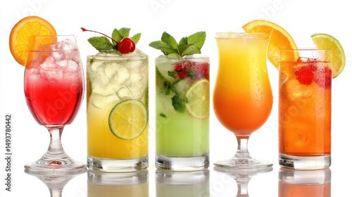 Classic cocktails isolated on white background Vector illustration of assorted refreshing beverages