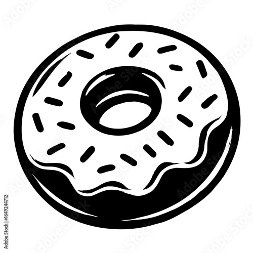 donut, donut, sweet, snack, dessert, pastry, baked, bakery, sugar, icing, sprinkle, treat, delicious, comfort food, breakfast, coffee break, cafes, culinary, black-and-white, vector, illustration, graphic, symbol, emblem, logotype, design element, isolated, white background, simple, minimalist, silhouette, outline, round, hole, glaze, confectionery, indulgence, happy, childhood, celebration, party, ring