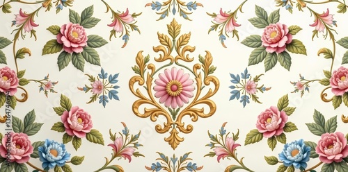 Classic floral damask design in pastel tones, elegant vintage wallpaper, retro, decorative