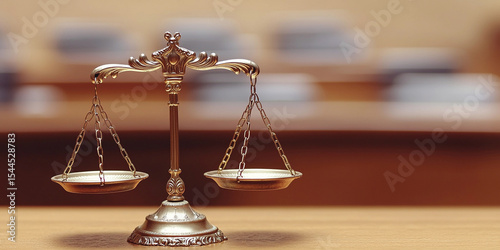 Classic golden balance symbolizing justice in a court setting Generative AI