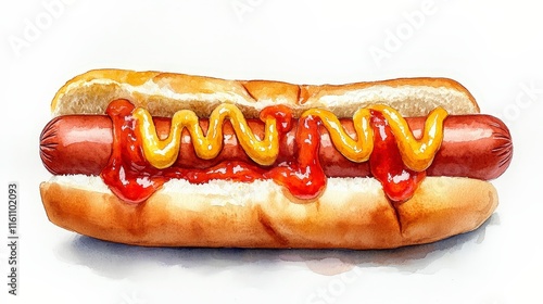 Classic Hot Dog with Ketchup and Mustard on a Bun Isolated
