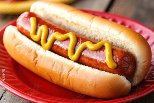 classic, hot, dog, mustard, red, plate, food, snack, bun, sausage, ketchup, fast, comfort, meal, eat, lunch, american, cookery, bar-b-q, picnic, casual attire, dining, grilled, wiener, bread, condiment, yellow, tasty, delicious, traditional, simple, quick, table, wooden, fresh, junk, street, dinner, party, savoury, beef, pork meat, epicure, popular, homemade