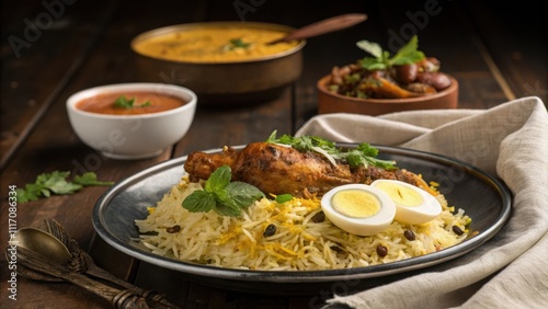 Classic Hyderabadi Biryani with Sides Served on Elegant Plate