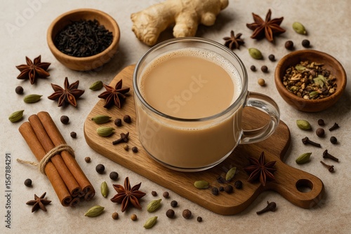 background, kitchen, spice, organic, drink, herb, ingredient, caffeine, aromatic, cappuccino, dairy, cinnamon, sweet, clove, cup, morning, fragrant, beverage, froth, indian culture, popular, chai, brown, delicious, hot, teacup, vegetarian