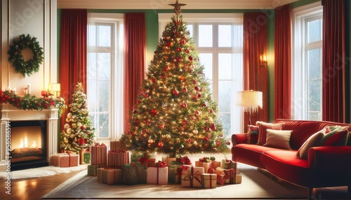 Classic Red and Green Christmas Magic Imagine a cozy living room adorned with classic red and green decorations.