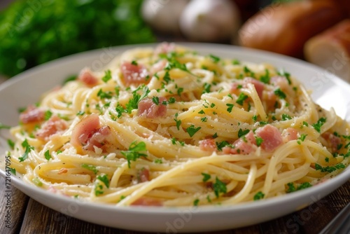 spaghetti, carbonara, parsley, italian cuisine, pasta, cheese, traditional, homemade, comfort food, egg yolk, dish, epicure, dinner, meal, cooked, gastronomy, culinary, bacon, grated cheese, black pepper, herb, garnish, rich, food photography, warm, savoury, european, authentic, cookery, dining, eatery, carbohydrate, starch, rustic, indulgence, delicious, lunch, cooking, culinary arts, noodle, plate, food, italian