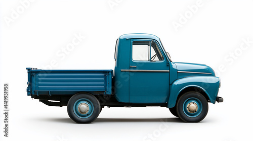 truck, classic, vintage, blue, vehicle, transport, delivery, commercial, pickup, side, profile, transportation, automobile, retro, old, car, sideview, isolated, modern, design, three-dimensional, rendering, graphic, picture, image, colours, detail, simple, commercial vehicle, classic car, delivery truck