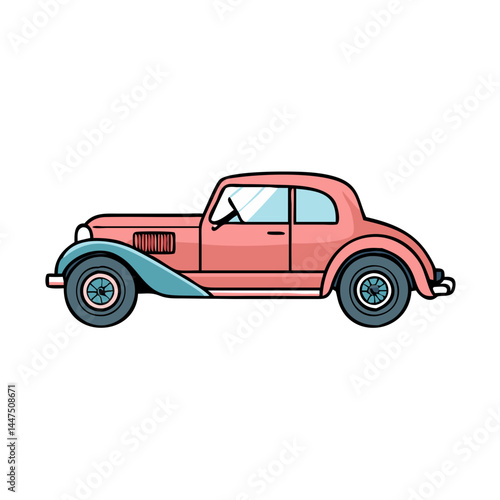 classic, vintage, retro, car, illustration, design, pink, automobile, vehicle, transportation, old-timer, antique, old, fashioned, stylish, elegant, luxury, beautiful, aesthetic, art, drawing, graphic, vector, image, icon, symbol, model, coupe, wheel, tire, hood, fender, windscreen, door, roof, body, light, headlamp, rear lamp, chrome, paint, colours, vintage car, classic car, old car