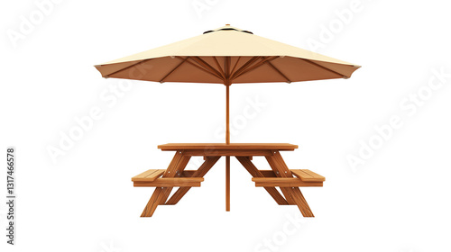 Classic Wooden Picnic Table with Umbrella isolated on transparent background (2)