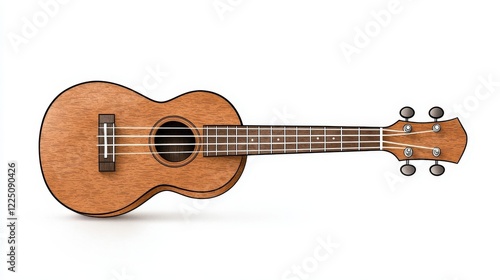 Classic Wooden Ukulele on White Background with Vibrant Color and Detailed Design Elements