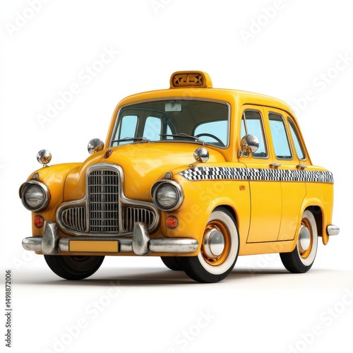 Classic Yellow Taxi Cab Vintage Retro Car Illustration 3D Render