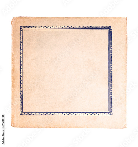 paper, square, frame, border, empty, blank, old, isolated, ornament, retro, cut-out, antique, ancient, aged, book, card, certificate, classic, classical, cover, dated, decor, design, diploma, document, elegant, from above, front, frontal, geometric, greece, greek, invitation, literature, minimal, object, on white, ornamental, parchment, simple, stylish, template, topview, traditional, vintage, worn out, yellowed