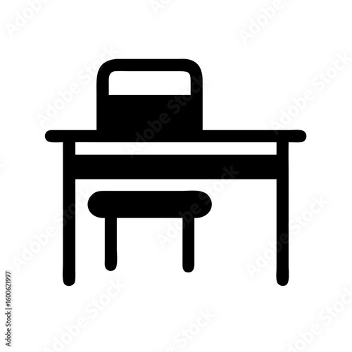 Classroom desk and chair, minimalistic icon, simple design perfect for educational use. Functional classroom desk and chair evokes learning environment, ideal for schools, universities.