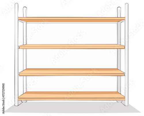 shelf, shelf, shelving, unit, rack, storage, display, empty, wood, wooden, metal, frame, 4, tier, tier, level, level, simple, minimalist, modern, minimal, clean, blank, space, isolated, illustration, vector, graphic, retail, store, shop, home, office, kitchen, organisation, organised, product, merchandise, furniture, household, commercial, business, object, racked, showcase, decor
