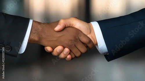 clean energy renewable policy concept. Handshake between two individuals in a professional setting.