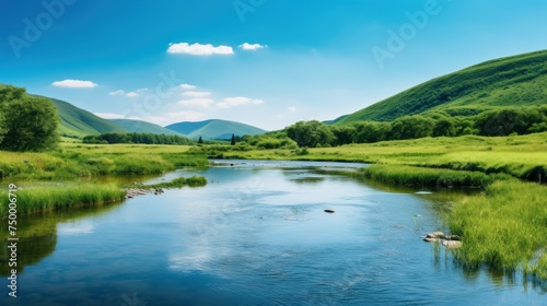 Clean river landscape with beautiful mountain background, beautiful nature background.