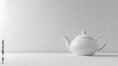 Clean White Ceramic Teapot with Smooth Curved Design on Plain Background