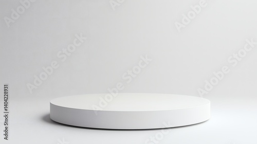 Clean White Round Product Display Platform on Seamless White Background, Ideal for Minimalist Product Showcases and Presentations with a Focus on the Item