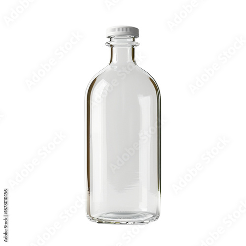 Clear Empty Glass Bottle With White Cap on transparent background