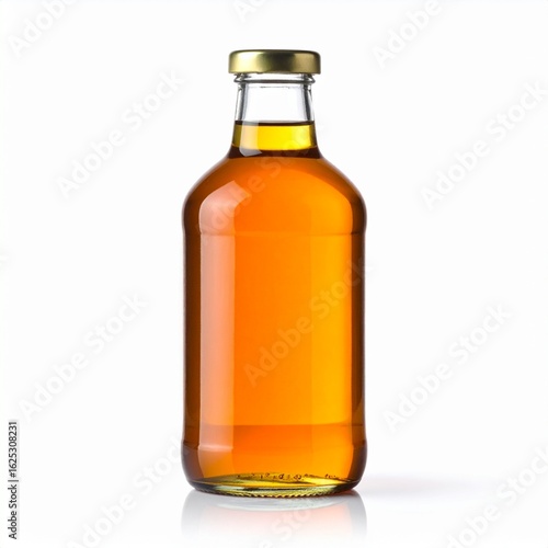bottle, glasses, amber, liquid, gold, cap, food, drink, sirup, honey, sweet, sweetener, beverage, container, clear, transparent, product, isolated, studio, white, background, cardboard box, sealed, delicious, healthy, natural, organic, smooth, thick, viscous, gold, front view, front, epicure, foodstuff, closeup, sweetness, health food, alimentary, natural product