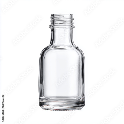 Clear glass bottle with screw cap on white background