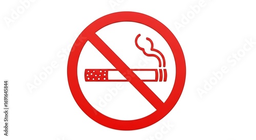 Clear no smoking sign with red prohibition circle and cigarette symbol indicating health warning and smoke-free zones