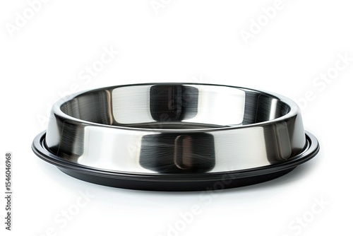 clear pixel visual of Empty pets bowl isolated on white background Metal cat or dog bowl