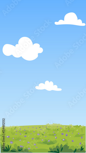 Clear Sky and Grass – Vertical Cartoon Nature Background Vector