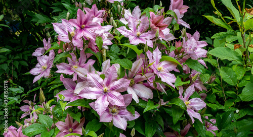 Clematis "Nelly Moser" is a genus of about 300 species within the buttercup family, Ranunculaceae.