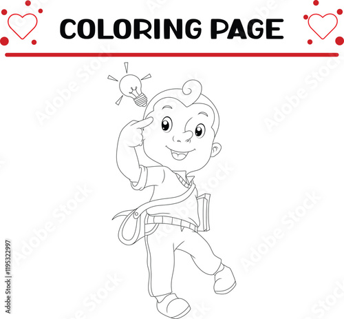 clever boy is getting idea coloring page for kids