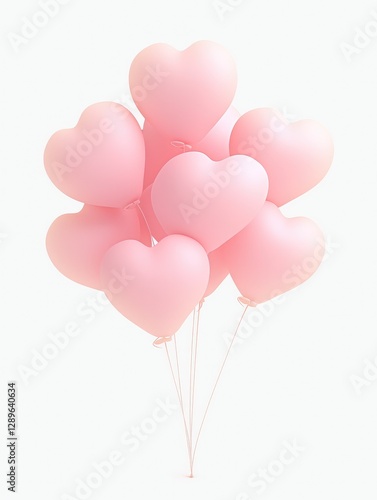 Clip Art Style Pink Heart-Shaped Balloons Isolated on a White Background