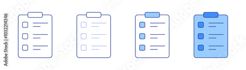 Clipboard icon available in 4 styles. Thin Line, Bold, Duotone style. Vector illustration. Editable Stroke