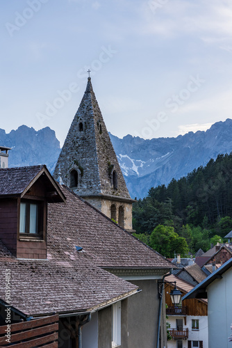 alps, outside, france, hautes alpes, mountain, nature, landscape, provence-alpes-côte d'azur, village, architecture, building, catholic, christian, church steeple, church, house, historical building, religon, street, city, sunset, evening, roof
