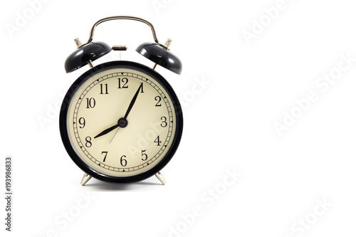 clock placed on white background with copy space. image for isolate, alarm, copy space, retro, antique concept