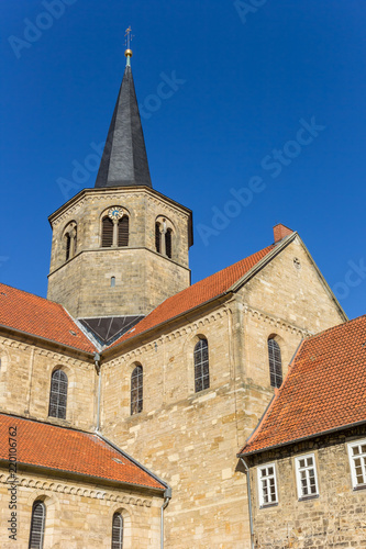 Clock tower of the St. Godehard church in Hildesheim, Germany