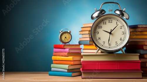 school, back, clock, book, back to school, education, course, training, teaching, learn, primary, textbook, copy space, background, banner, time, stopwatch, student, blackboard, learning, concept, study, classroom, equipment, stationery, idea, creativity, book, class, pen