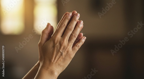 Close of hands together in prayer symbolizing Christian faith and dialogue with God