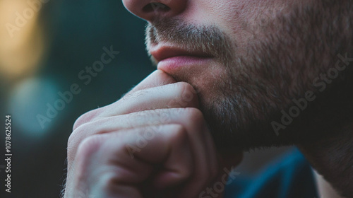 Close shot of a hand loosely clenched near the chin, symbolizing deliberation.