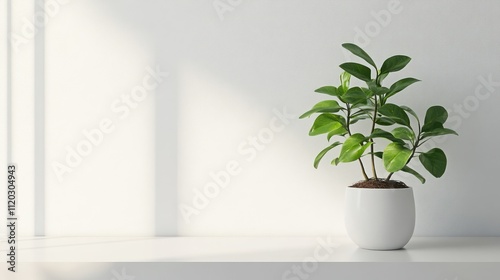 potted, white, plant, placed, surface, against, wall, sunlight, background, pot, minimalism, simple, green, foliage, leaf, shadow, light, interior, decoration, home, decor, houseplant, indoor, natural, style, design, aesthetic, bright, clean, empty, room, floor, modern, fresh, lightened, space, still life, studio, object, desk, table, cleanliness, lifestyle, nature, minimal, art, arrangement, ai, generative