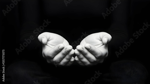 prayer, hand, faith, hope, spirituality, religion, belief, devotion, worship, peace, serenity, meditation, black-and-white, monochrome, closeup, dark background, prayerful, humbleness, gratitude, blessing, reverence, calm, calmness, spiritual, religious, monochromatic, photo, image, picture, still life, art, artistic, aesthetic, gesture, symbol, meaning, concept, emotion, feeling, expression, contemplation, inner peace, soul, spirit, mindfulness