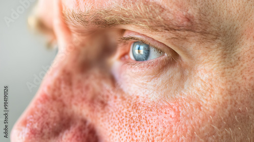 Close up face of elderly man with wrinkled and problem skin. Dermatology concept