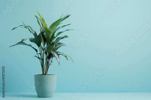 houseplant, decorative, copy space, plant, blue, background, green, pot, leaf, flora, interior, nature, fresh, home, decoration, floral, wall, design, room, botany, growth, botanical, light, foliage, indoor, house, minimal, flowerpot, nobody, evergreen, object, grow, decor, simplicity, freshness, lush, minimalistic, small, beautiful, simple, organic, ecology, greenery, closeup, potted plants, gardening, leaf, isolated, palm