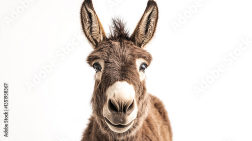 donkey, animal, mammal, equine, brown, ear, portrait, head, white background, closeup, furry, farm animal, isolated, cute, eye, nose, face, wildlife, nature, closeup, studio shot, farm animal, muzzle, fur, domesticated, wild, rural, countryside, beast, creature, fauna