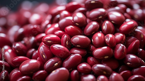 Close up of a fresh adzuki bean, macro photography, delicious textures, front view from above, studio lighting, white background.