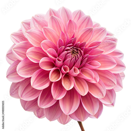 Close up of a fully bloomed pink dahlia flower isolated on transparent background