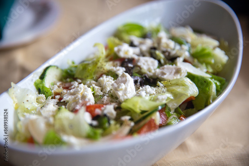 cheesy, vegetarian food, dressing, crisp, oil, pepper, mediterranean, greek salad, alimentary, salad, mix, olive, greek, culinary arts, meal, feta, homemade, dressed, vinegar, cucumber, lettuce, wine, culinary, dinner, eatery, healthy, diet, food, closeup, black olive, cookery, starter, lunch, olive oil, tomatoes, italy, feta, cheese